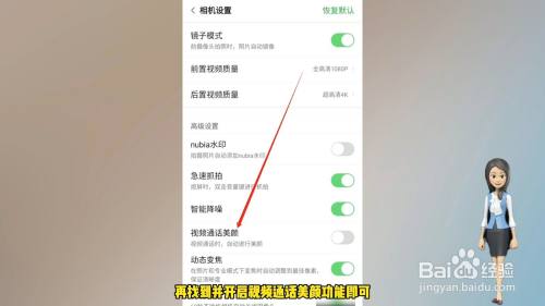 在手机相机的更多设置页面中,找到视频通话美颜一栏,点击后方的开关按钮来开启该功能。
