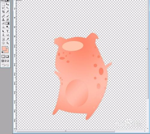设置前景色为淡粉色,背景色为深粉色,我们填充小猪的额头路径,小猪的肚皮路径。身上的各个圆形的花纹路径用渐变的粉色来进行填充。