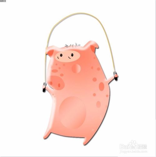 小猪在艺术作品当中有着各种各样的形象,孩子们也非常喜欢这样的一种角色。我们今天就要绘制这样的一个角色,可爱的小猪有着胖胖的身材,它正在快乐的跳绳。