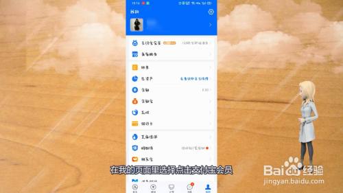 在我的页面里选择点击支付宝会员。