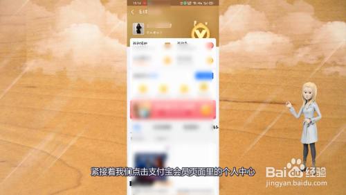 紧接着我们点击支付宝会员页面里的个人中心。