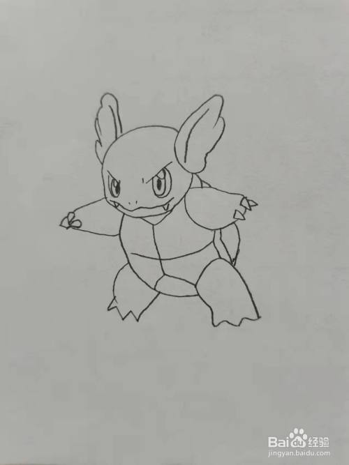 接着,我们画卡咪龟的身体轮廓和四肢。