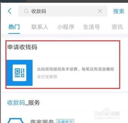 支付宝首页搜索里输入「收钱码」,然后点击「申请收钱码」。