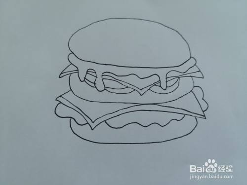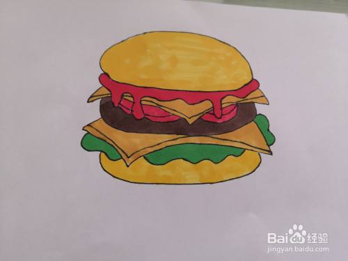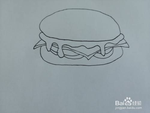 年轻的朋友在外都喜欢吃汉堡包,今天我们就来画一个汉堡包,画法简单易学,喜欢的朋友可以一起来画一个。