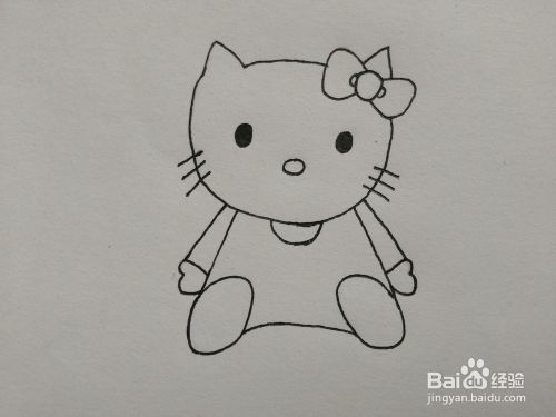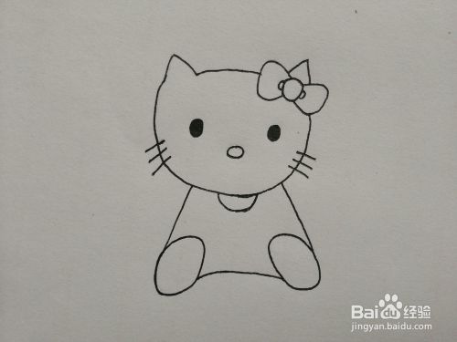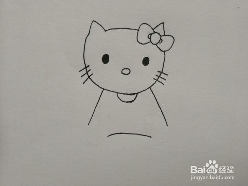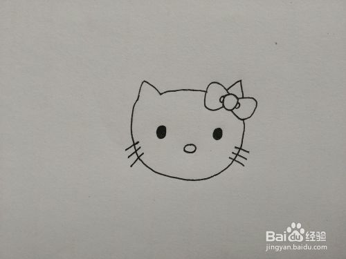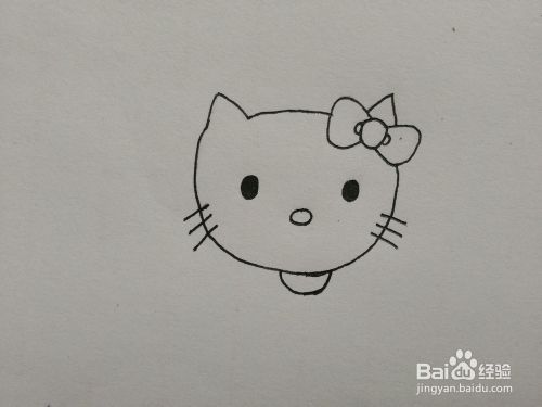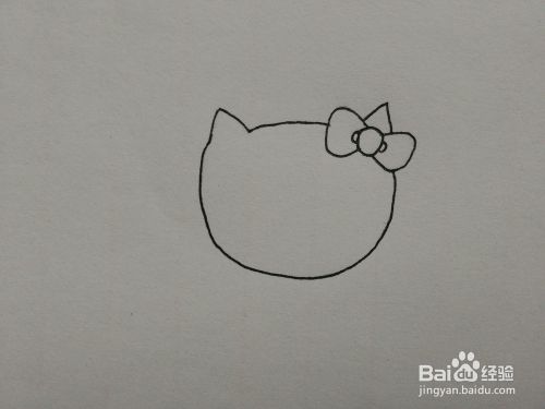 连接着蝴蝶结画出hello kitty的脑袋轮廓和耳朵。