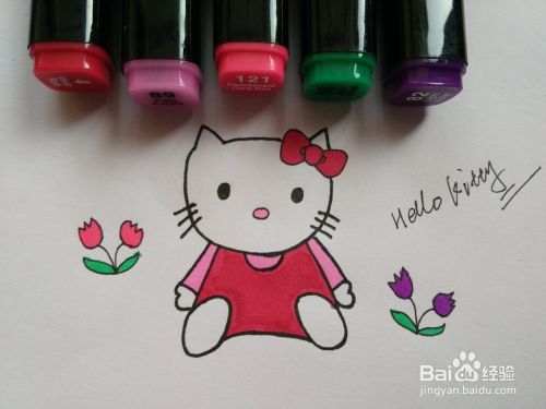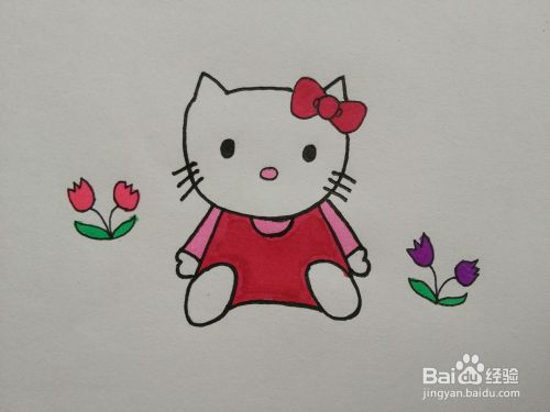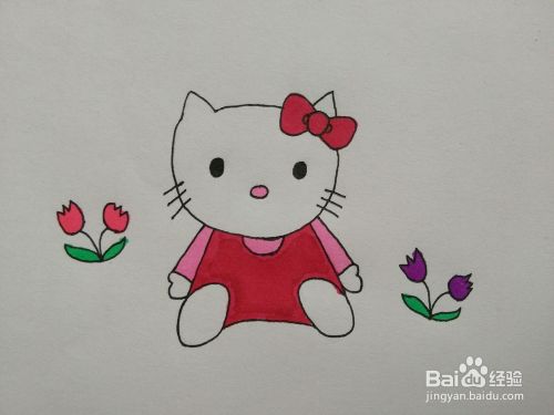 最后给画好的hello kitty涂上颜色,让画面更丰富好看,这样hello kitty就画好了。