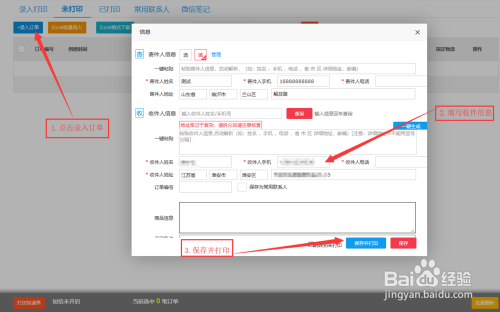 可以录入订单打印快递单