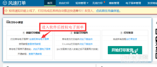 进入软件的第一步按照提示操作,授权电子面单(授权开通电子面单的账号)