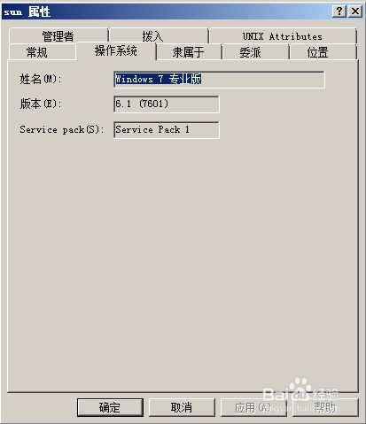 点击操作系统选项卡,就可以看到操作系统信息了;示例中加域计算机,安装的是windows 7 SP1专业版的操作系统;
