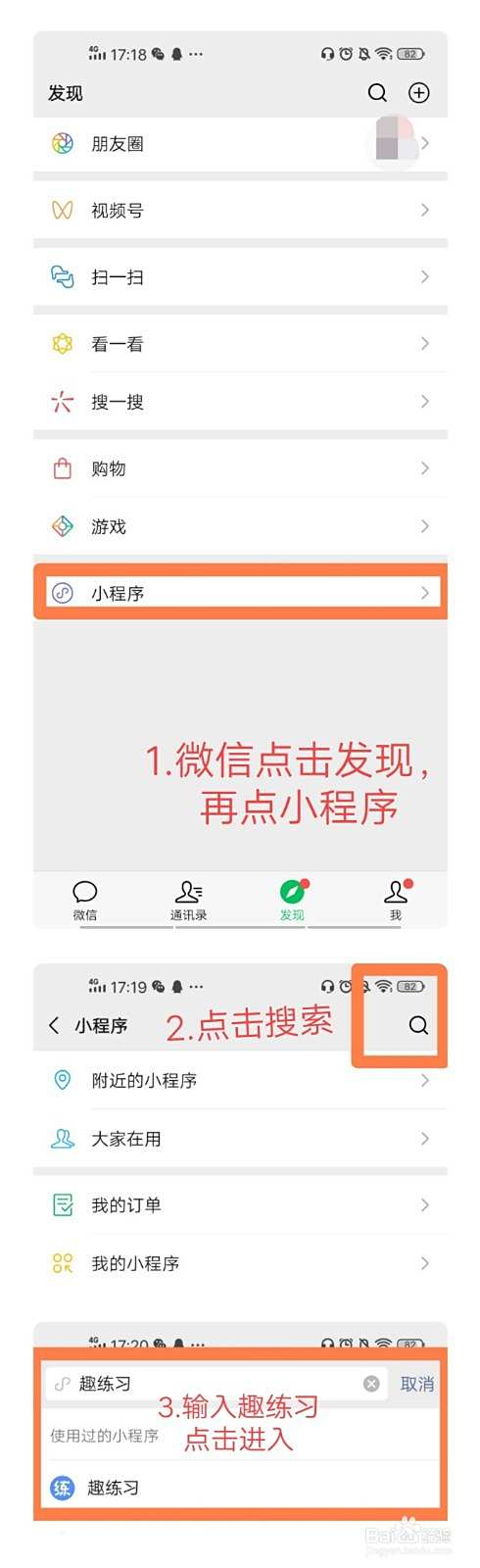 微信--发现--搜索趣练习--进入趣练习小程序
