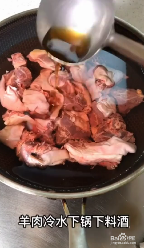 羊肉冷水下锅,下料酒。葱,生姜片,这样可以有效的把腥臊味处理掉。