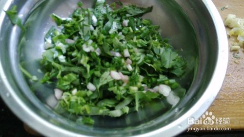 首先,我们要准备好葱,香菜,蒜头和辣椒,然后分别把他们切碎