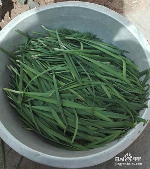 现在开始制作饺子馅。先将韭菜择干净,放到一个小盆里。