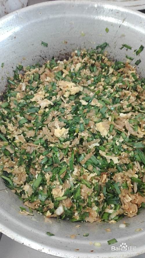 可以适当的加点已经准备好的萝卜丝,这样味道更好。把萝卜丝和韭菜加到炒好的鸡蛋里,加盐,酱油少许,包子饺子料,反复搅拌,饺子馅就做好了。