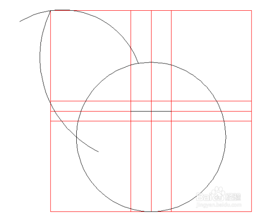 利用圆弧画出阿狸外耳的轮廓,注意相交于辅助线角上最顶端那个点