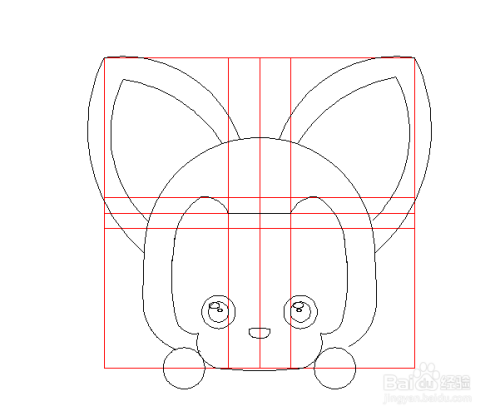 用两个同心圆以及两个小椭圆画阿狸的眼睛,鼻子可以用圆弧来构造。最后镜像过去,阿狸的眼睛鼻子也画完了。