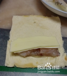 土司面包片 切掉四个边,用擀面杖擀平压实