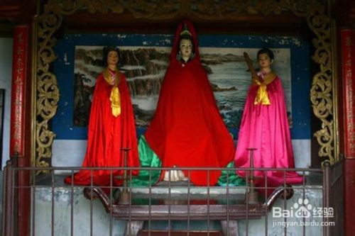 孟姜女庙分两个殿,前殿供有孟姜女的塑像,旁边有童男童女。像后有“姜坟雁阵”彩绘壁画。整个殿内庄严肃穆,干净整洁。后殿供奉着观音、文殊、普贤三位菩萨。