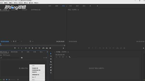 首先打开pr,点击素材箱,点击右键,点击导入。