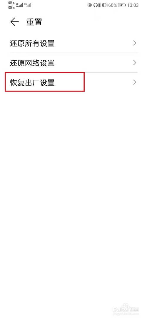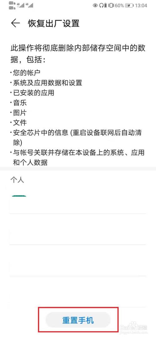 在恢复出厂设置操作页面,点击【重置手机】即可。