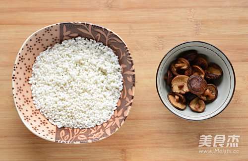 1将糯米浸泡两个小时左右,滤干备用;干香菇浸泡后洗净备用