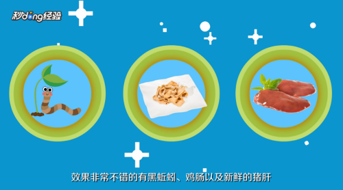 4效果非常不错的有黑蚯蚓、鸡肠以及新鲜的猪肝。