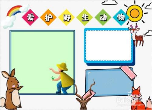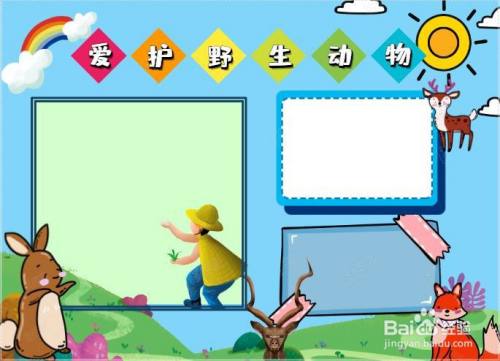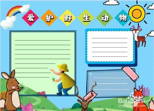 最后在三个边框内画上横线,横线上写文字,这样一张爱护野生动物手抄报就完成啦。