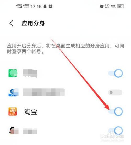 在“应用分身”窗口中,激活【淘宝】选项完成。