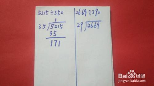 四位数除以两位数,是有不同情况的,今天演示两种情况。四位数除两位数的竖式计算方法: