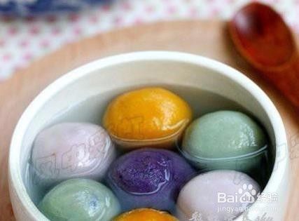 这是充分利用紫薯做出来的汤圆,皮馅都用到了。蒸一部分做馅,煮一部分做皮,煮出的水还能神奇的变幻色彩做出彩色面皮。