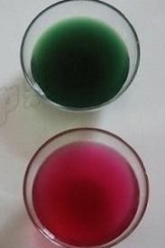 分别在两份紫薯水中挤入柠檬汁及微量食用碱