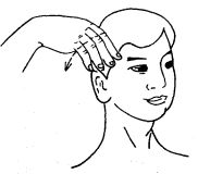 1、指扫散法 被术者坐位,术者站在被术者前方,一手扶住患者头部,另一手拇指伸直,其余四指并拢微屈,拇指桡侧面紧贴一侧额角发际处,其余四指置于同侧耳后高骨,使食指与耳上缘平齐。拇指在额角发际至耳上方范围内做快速的单方向推动,同时其余四指指端在耳后至乳突(翳风穴)范围内做快速单方向推动。