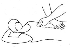 1、拇指分抹法 用双手拇指指腹着力,同时吸附于一定部位上,做直线或弧线的移动(图)。