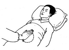 1、掌摩法 手掌自然伸直,将手掌平放于治疗部位上,全掌着力由前臂带动手掌做环旋抚摩