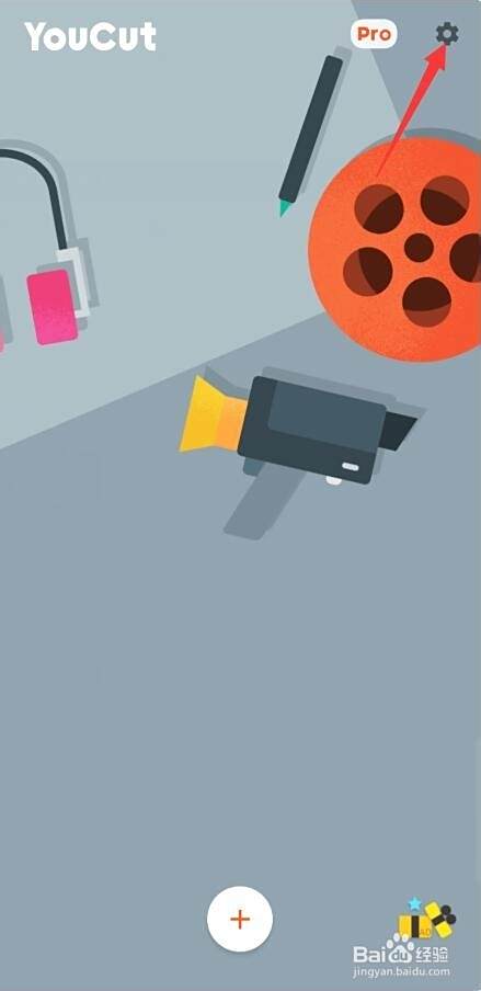 打开手机桌面,进入youcut视频编辑器,点击右上角齿轮按钮。