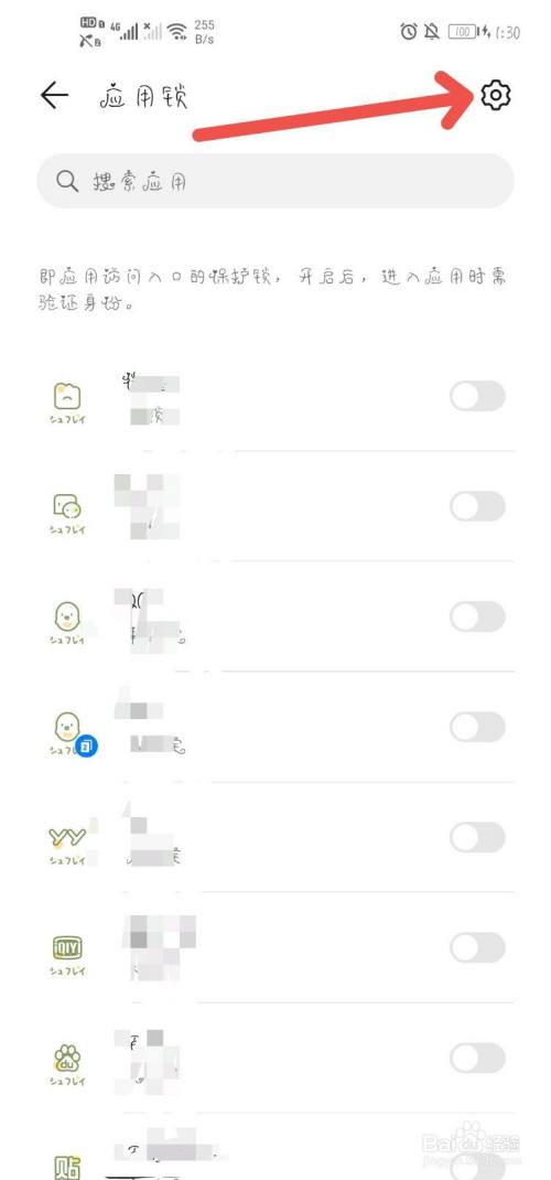 点击“应用锁”界面右上角【设置】按钮,开通应用锁功能,并设置密码。