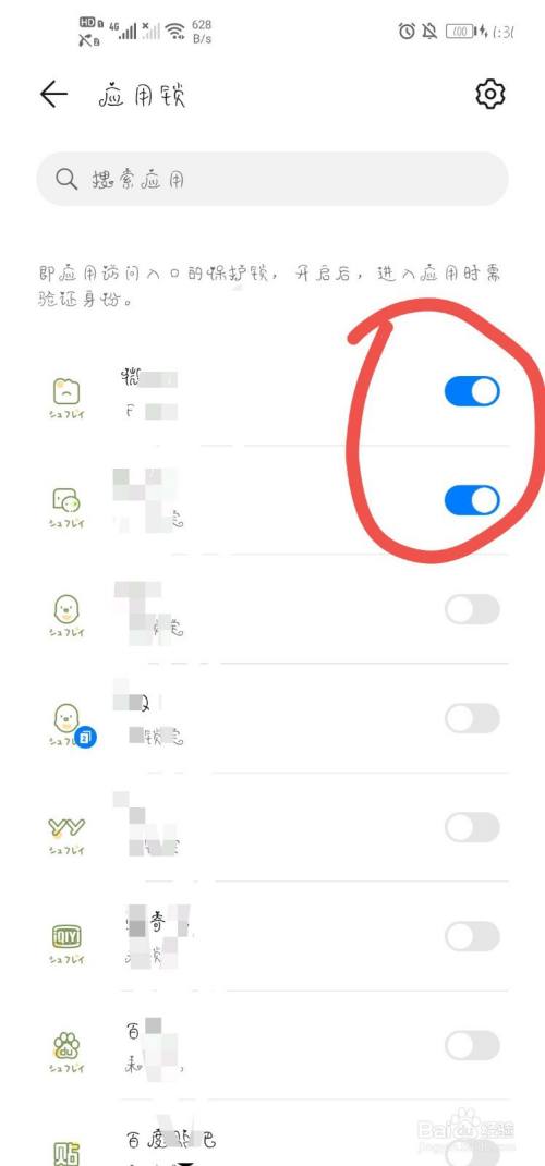在“应用锁”界面下勾选需要软件加密的软件即可。