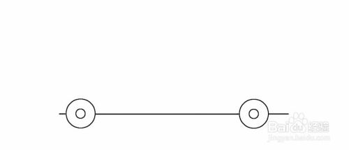 画车轮和底盘线。先画一个稍微大点的圆作为车轮的轮廓,再在里边画一个小的圆作为车轮的圆轴,一个车轮就勾画好了。在用同样的方法在距离这个车轮稍微远些的地方画上一个车轮。距离的远近觉得车子的大小。接着将两个车轮用横线连接起来,左边车轮横线稍微短些,右边的横线稍微长些,大约是左边的2倍。