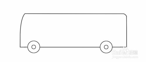 然后,接着底盘线往上画,类似长方形,左边带弧度的线。就完成了公共汽车的轮廓。