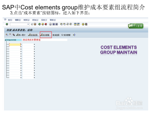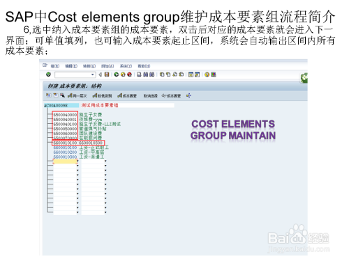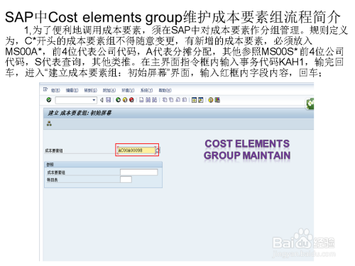 为了便利地调用成本要素,须在SAP中对成本要素作分组管理。规则定义为,C*开头的成本要素组不得随意变更,有新增的成本要素,必须放入MS00A*,前4位代表公司代码,A代表分摊分配,其他参照MS00S* 前4位公司代码,S代表查询,其他类推。