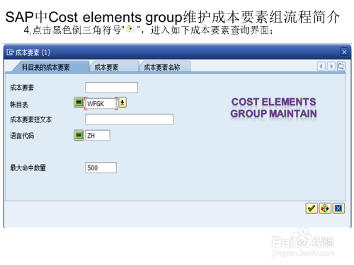 点击黑色倒三角符号,进入如下成本要素查询界面;