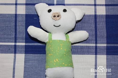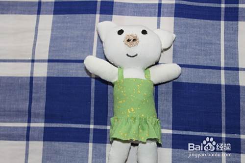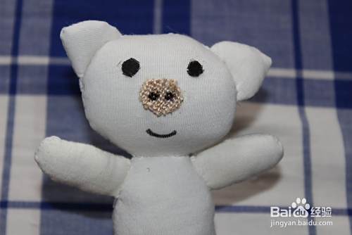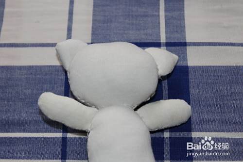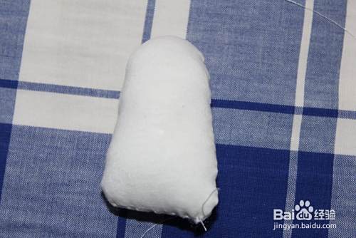 把身体的两片布料缝合,塞入棉花,然后收口。