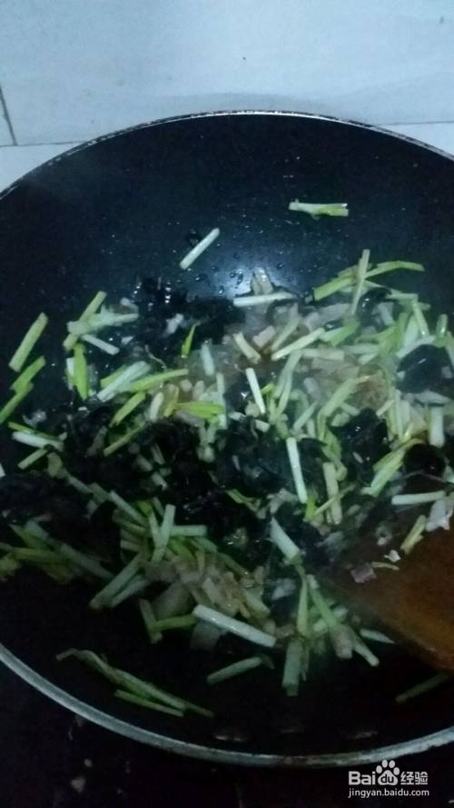 蒜黄木耳肉丁卤跟刚才没有什么区别,注意不要炒时间太长蒜黄老了不好吃,不要放老抽,颜色太重了