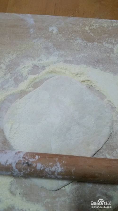 先把面团擀出四个角,然后对折着擀把面片擀大,不规则也没关系,可以慢慢调整