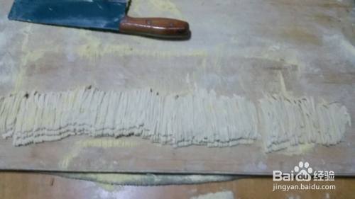 细细的切好,当然爱吃粗的可以切粗一点,然后把面条从第一层拾起,用手均匀用力把面条攥一下,有不均匀的地方也就一样了
