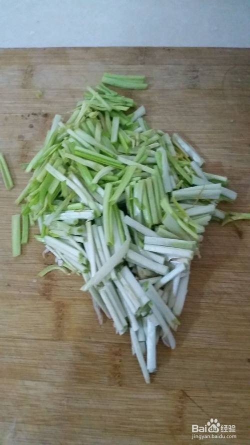 蒜黄木耳肉卤,把蒜黄切断,木耳切丝,肉丁刚才已经腌好了