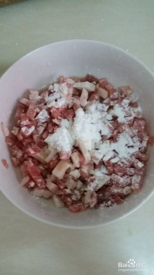 把五花肉切丁用淀粉和料酒腌一会