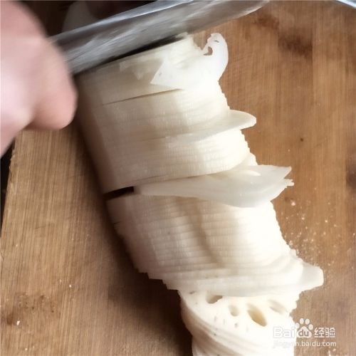 切藕备用:将藕取出切薄片,薄片尽量均匀,如果个人喜欢吃厚片也可以,在下锅煮的时候要注意火候,熟透即可,不能不熟或熟过,影响口感。