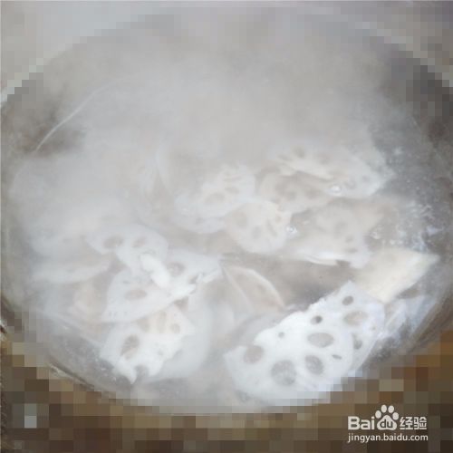 煮藕:将切好片的藕捞出水放入沸水(一定要烧开水再放藕,如果放入藕后发现水太少也一定要添加热水,不可加入凉水)中煮至藕片熟透即可,千万不要煮的时间太长,以刚没有生脆味儿为准。