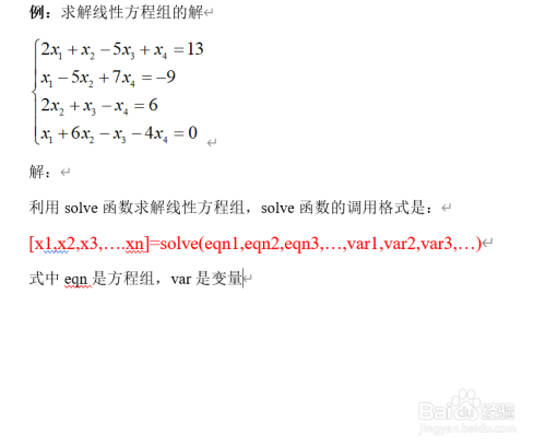 第二步、求解例子及solve函数的调用格式如下图所示:
